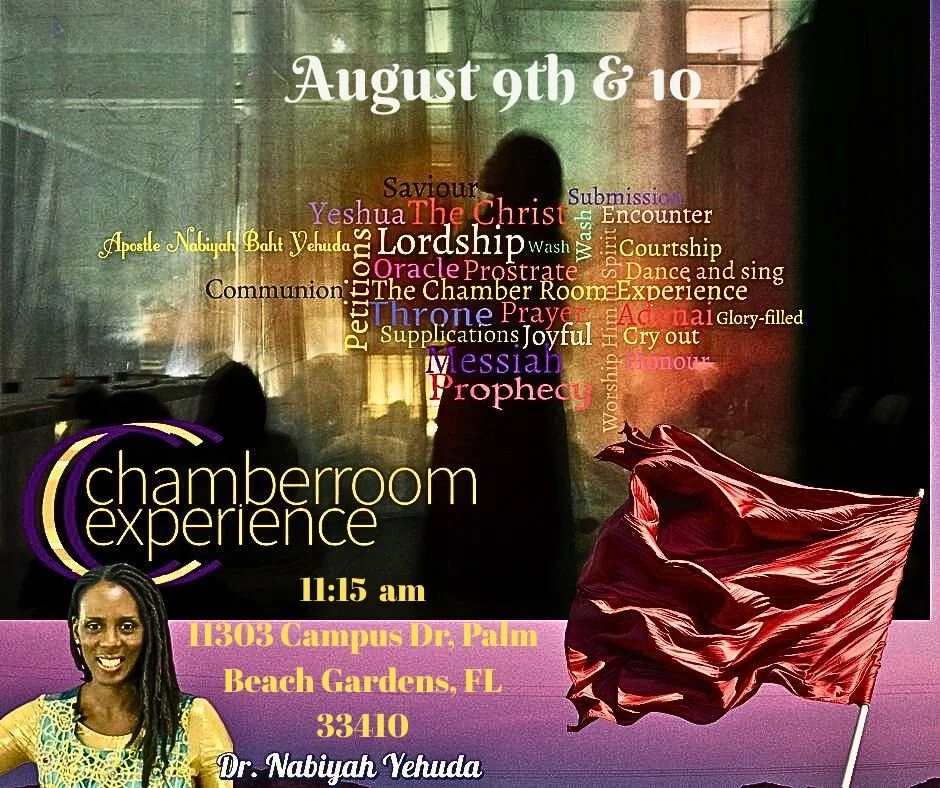 The Chamber Room Experience is a Christ-centered gathering space designed to help you break free from inner conflict, hear God with clarity, and step boldly into your divine assignment. This is more than a meeting—it's a movement of healing, prophetic strategy, and spiritual renewal. Whether you're seeking breakthrough, direction, or a fresh encounter with the Holy Spirit, you are welcome here.